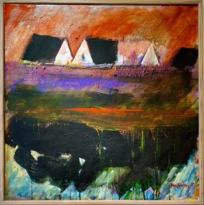 Hägring, måleri på canvas av Mary Segerfalk (BxH 30×30 cm).